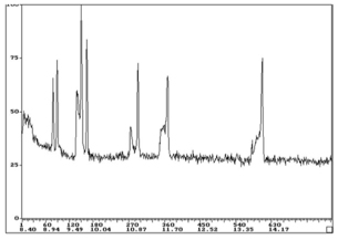 The theoretical vapour residence time of the sample within the inlet is now much longer in this splitless injection, as might be expected due to the much lower liner carrier gas flow rate.  We need to protect the sample from contacting the lower, hot metal surface of the inlet, otherwise we get ‘chair shaped’ peak deformations as shown here and poor peak area reproducibility due to sample thermal decomposition.
