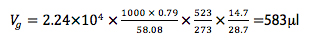 V1 = injection volume (µl), D = sample solvent density (g/mL), MW = molecular weight of sample solvent, T = inlet temperature (oC), Pi = inlet pressure, Po = atmospheric pressure