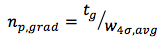 So from the peak widths reported by the system I add them all up and divide by the number of peaks found, then use the equation above to get the 4σ deviation which represents the peak width at the baseline.