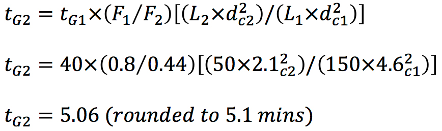 We wish to translate the method to the following column - L1 50 x 2.1mm, 1.9mm and in this case the stationary phase will remain unchanged. This change is allowed under the current guidance as the L/dp ratio change is approx.. -12%