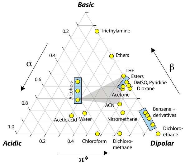 | Solvent | Dipole π* | Acidity α | Basicity β |