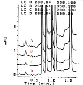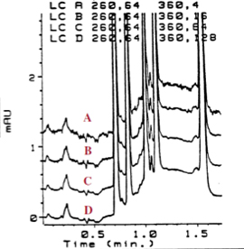 The first change to your usual routine is that you will need to look at the UV spectra for all analyte peaks of interest; however, these should be very easy to obtain from your data system.  Make sure you are looking at the 0th order spectra rather than a derivative (1st, 2nd order etc.).  Follow the steps below to obtain the most appropriate acquisition and reference wavelengths, and note that it is possible with most instruments to record separate signals for each analyte in order to obtain the optimum spectral intensity and best baseline.