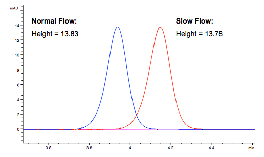Why does the peak height not change when flow changes?