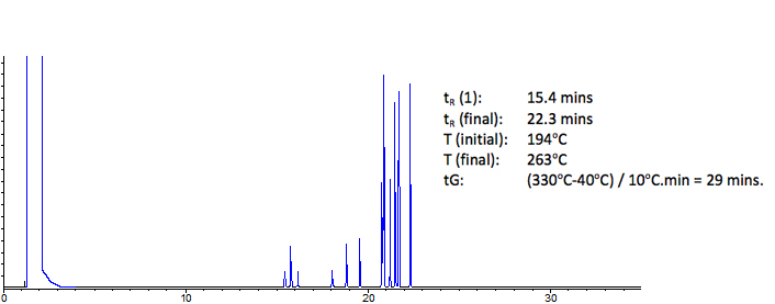 | Final Temperature: | 330oC (or Gradient temperature maximum for the column you are using) |