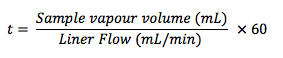 The residence time of the sample within the liner (t), under the splitless injection conditions shown above is given by: