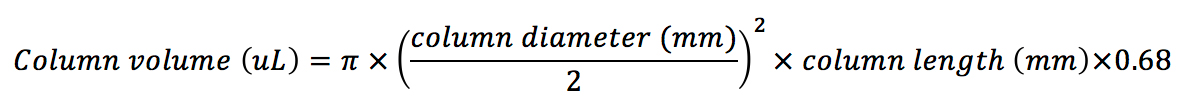 Equilibration tends to be the downfall of many people trying HILIC for the first time. One of the important mechanisms in HILIC chromatography is the partition of analytes between the bulk eluent and a water enriched layer at the stationary phase surface. This layer needs to time to form and equilibrate and as such a ‘new’ column will typically need to be equilibrated with 50 – 100 column volumes prior to use and re-equilibration between injections in gradient HILIC mode will require between 10 and 20 column volumes to obtain reproducible chromatography in our experience. To calculate column volume;