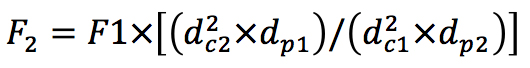 Another important adjustment is the volume of sample injected. As column dimensions are reduced, and the particle morphology is changed, the amount of stationary phase available is reduced. This risks overloading the column, fronting peaks, plus reduced accuracy and reproducibility of quantitation. We have found the following formula very useful, which is based on a well-established mathematical relationship. However, it further reduces the injected volume by 30% to account for the marginally lower loadability of the superficially porous particles. Reducing by a further 30% is generally more than is required to account for the reduction in available surface area, and the injection volume may be increased empirically if extra sensitivity is required.