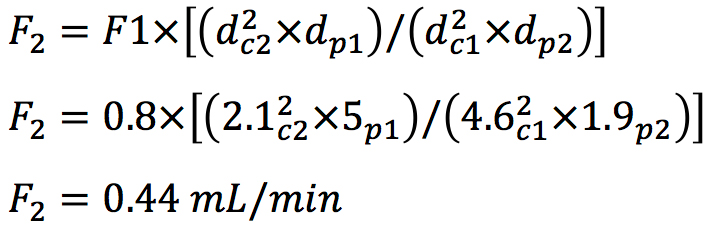 We wish to translate the method to the following column - L1 50 x 2.1mm, 1.9mm and in this case the stationary phase will remain unchanged. This change is allowed under the current guidance as the L/dp ratio change is approx.. -12%