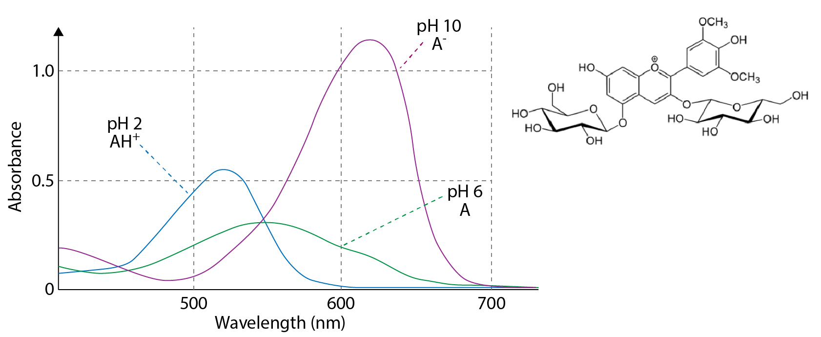 Figure 6:  Anthocyanin pigment in buffers of varying pH.