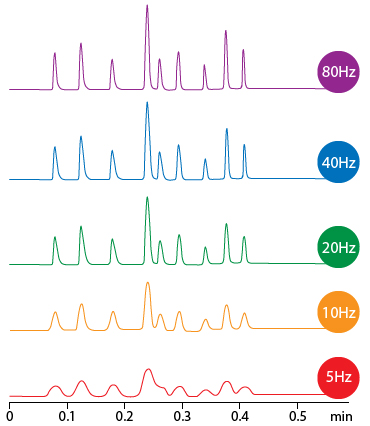 However, data sampling rate is not the only important factor in determining peak width and variables such as bunch rate or time constant, i.e. the digital bunching and filtering applied by the detector, are also of importance and some guideline as to these variables are shown in Table 4.