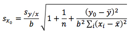 Equation 3 shows the formula for determining the standard deviation in the measurement of an interpolated value of Y using Equation 2 and at this point we lose most people.